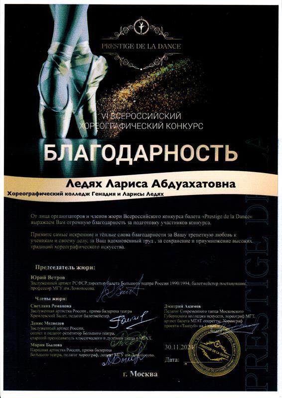 30 ноября 2024 года. Благодарности "PRESTIGE DE LA DANCE":