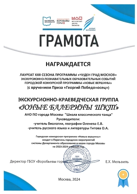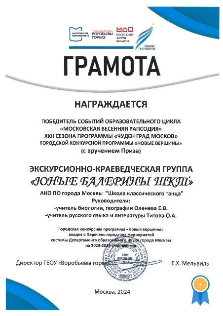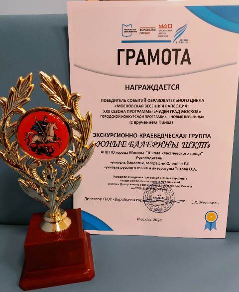 11 октября 2024 года. Диплом и благодарственное письмо Межрегионального конкурс-фестиваля хореографического искусства "Курская дуга"