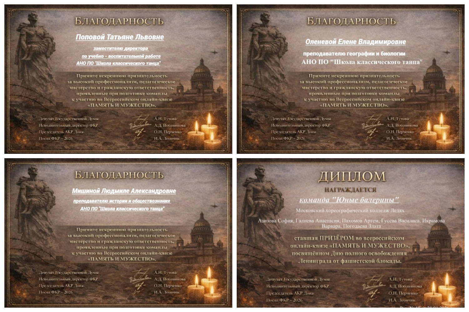 Команда «Юные балерины» Хореографического колледжа Ледях стали призёрами в Историческом онлайн-квизе «Память и Мужество»